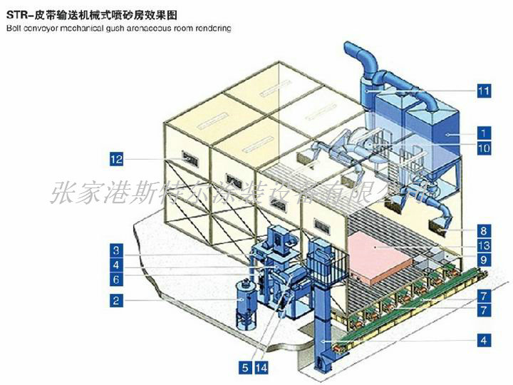 皮帶輸送機械式噴砂房效果圖