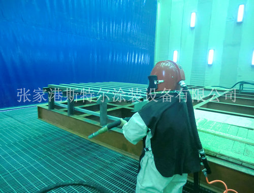 船舶結構件噴砂房內部操作實例