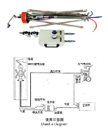 NKP-type 2 and our factory production of have no gas supporting it associated with inner diameter spraying Ф 250-Ф 700 mm of all kinds of pipeline. It is no use gas transmission of high pressure coating to it, then after the wall along the pipe inner surface spraying rotation, mobile to complete to conduit wall paint job. NKP-type 2 spraying coatings for the shape, so strong adaptability and can spraying high viscosity most of the coating. NKP-type 2 adapt to gush inside diameter Ф 250-Ф 700 mm of all kinds of pipeline.