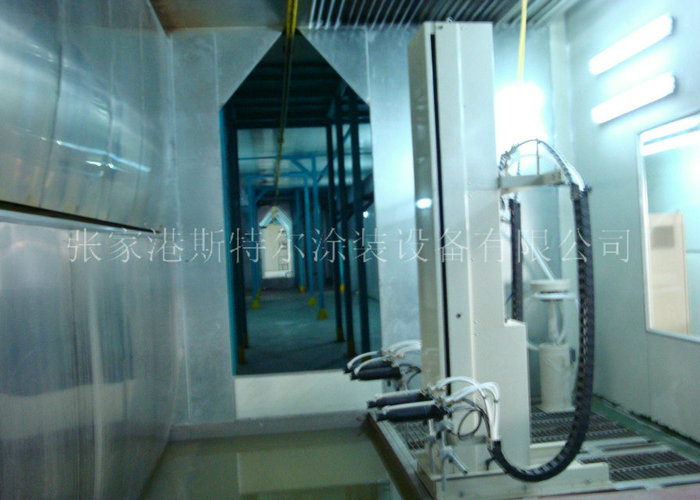 照明系統:在室體的頂側部和腰側部使用隔爆光照燈組。頂側燈組呈45o角安轉,腰側燈組安轉于墻體板內。燈管按照隔爆型東芝光線,既安全衛生又高效且運營維護不便,鎮流器按照本公司制定的噴房用鎮流器,可以保持光強達700Lux左右兩。